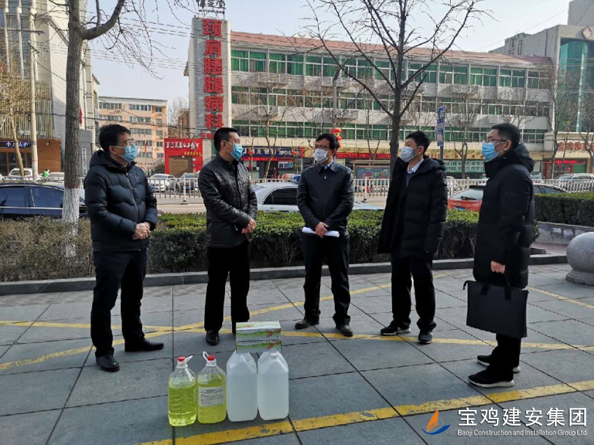 在辦公區(qū)周邊,渭濱區(qū)、橋南辦領(lǐng)導(dǎo)對(duì)我司的復(fù)工防控情況進(jìn)行了仔細(xì)詢問(wèn),并就防控具體措施、注意事項(xiàng)、安全隱患、規(guī)避方法等予以明確要求、悉心指導(dǎo),強(qiáng)調(diào)嚴(yán)格落實(shí)疫情防控工作,切勿放過(guò)任何一個(gè)細(xì)節(jié)。并為我司送來(lái)了兩桶84消毒液、兩桶75%的酒精以及兩盒一次性手套。