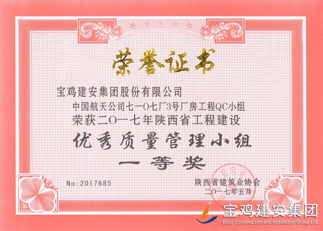 中國航天公司七一0七廠3號廠房工程QC小組